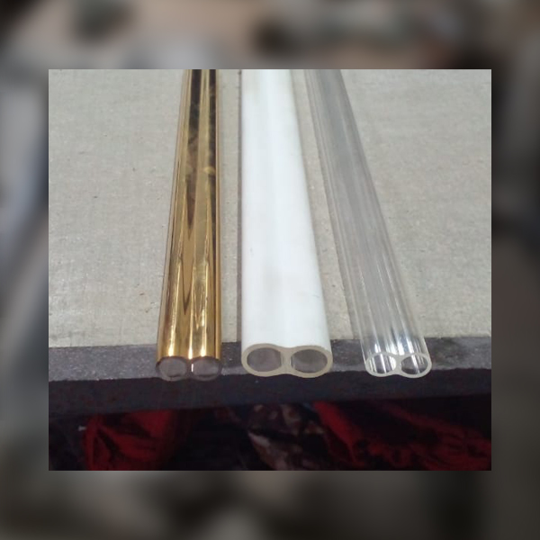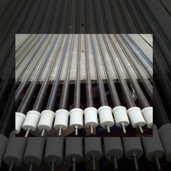 This is made up of 8-shape high-purity clear quartz twin tube, each tube has Heating Coil of KANTHAL material which runs in U shape in the tube. These heaters are available with gold reflector and without reflector. Reflector is in the form of gold coating on outer rear side of the tube, due to this also results in making surrounding work area cooler. This also increases the efficiency and directionality of the heater