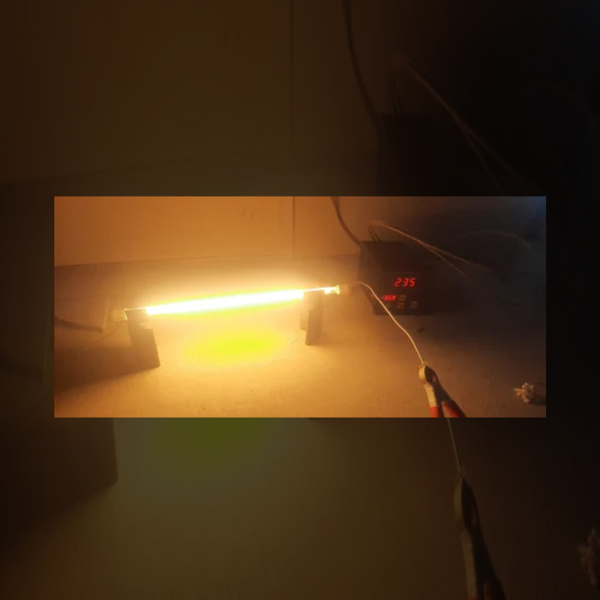 The radiant filament is placed inside a double channel 15x 33mm twin section quartz tube. Thanks to the incorporated gold reflector, 90% of the energy emitted in the rear area is recovered and redirected to the product that must be irradiated.